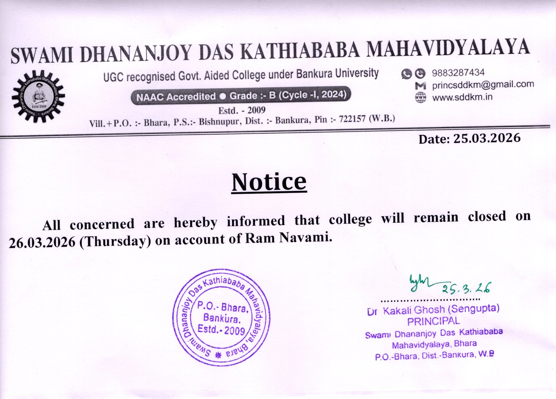 Holiday Notice for Birthday of Sri Harichand Thakur