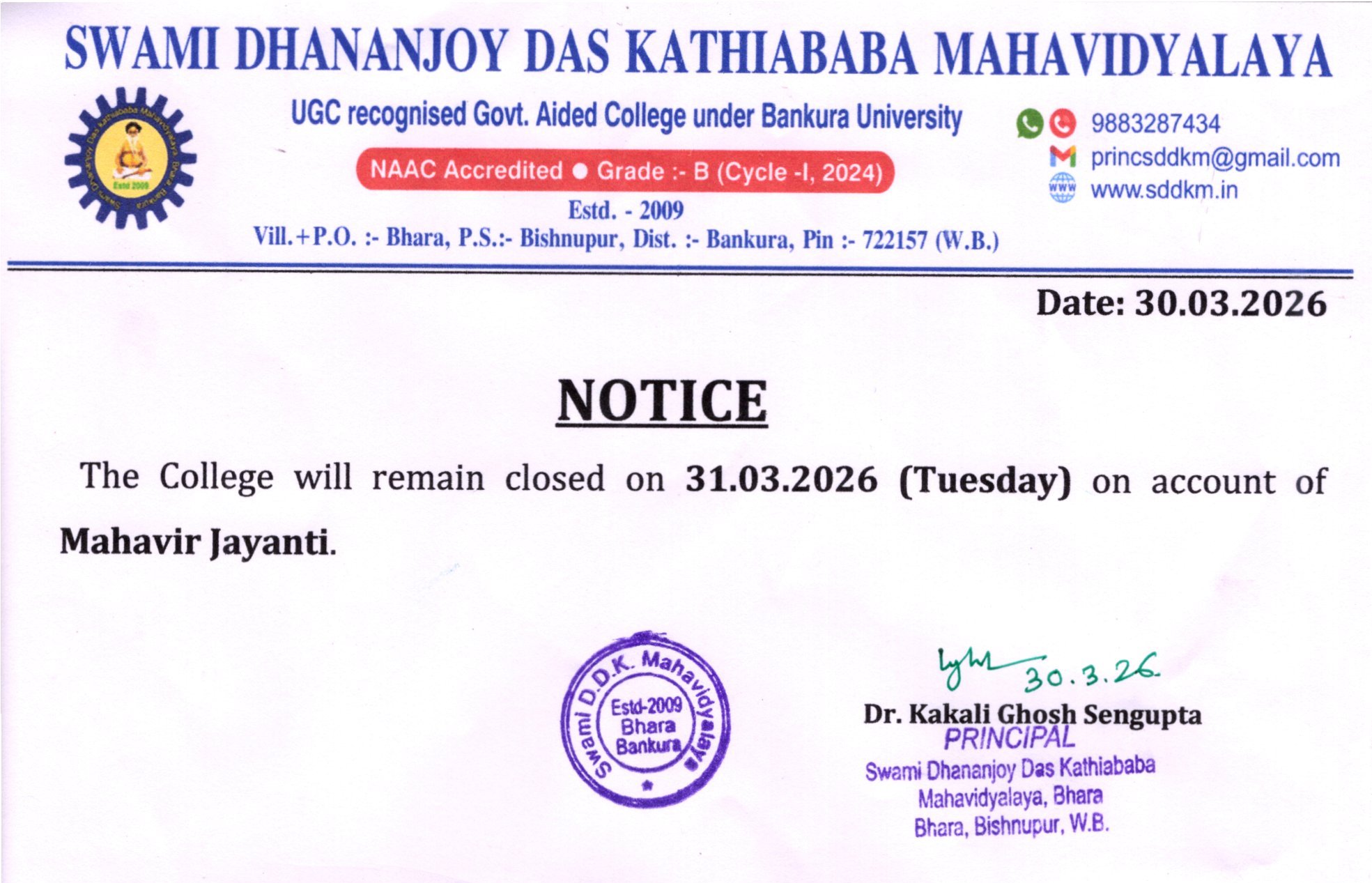 Holiday Notice Mahavir Jayanti